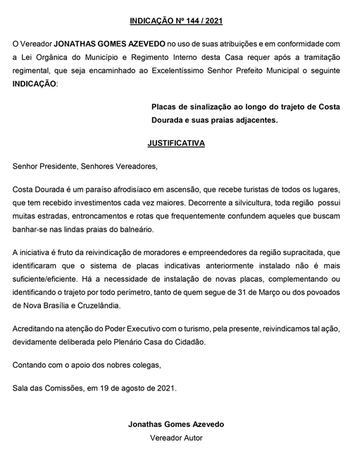 INDICAÇÃO Nº 144/2021
