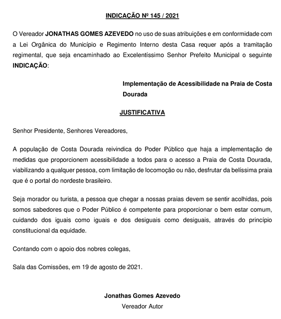 Assunto: Implementação de Acessibilidade na Praia de Costa Dourada.