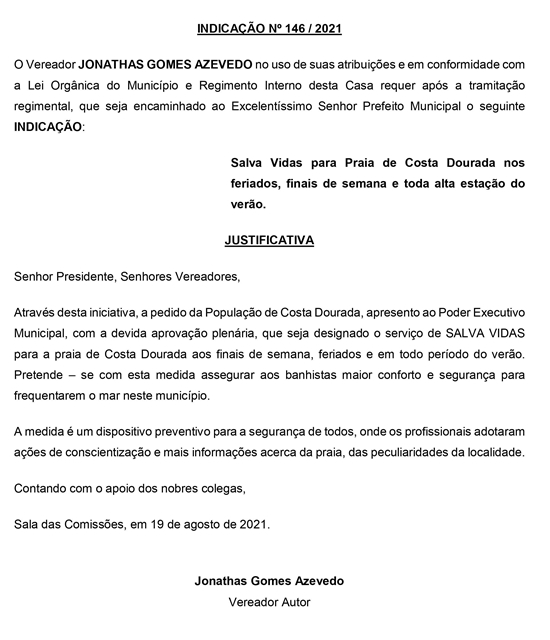 INDICAÇÃO Nº 146/2021