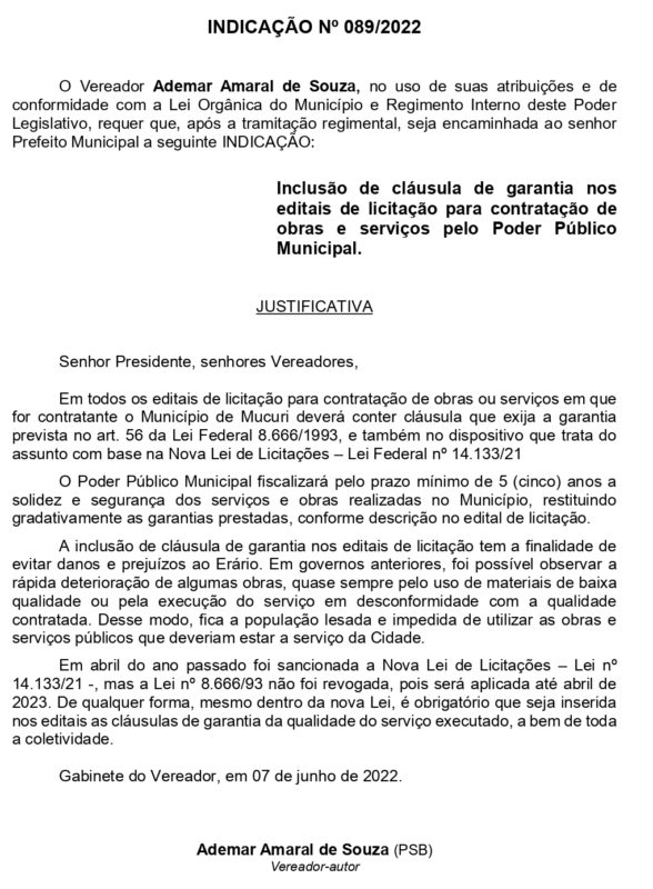 INDICAÇÃO Nº 089/2022