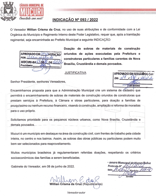 INDICAÇÃO Nº 093/2022
