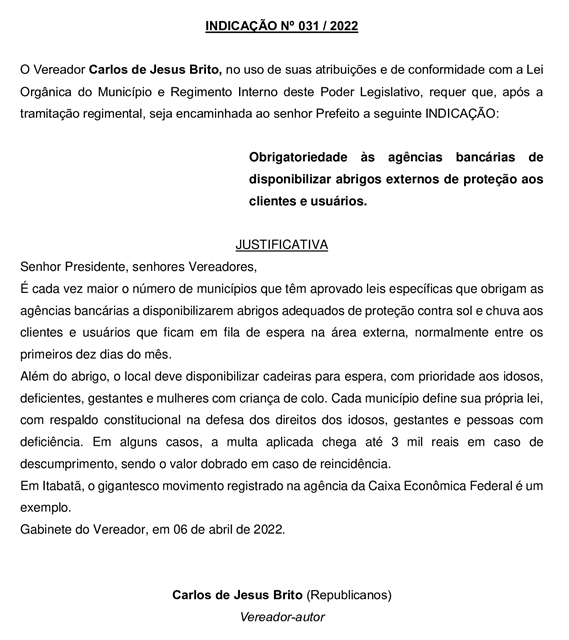 Na reunião de terça-feira (12/04), os Vereadores aprovaram duas proposições de autoria do Vereador Carlos de Jesus Brito (Carlinhos da Ótica – Republicanos). Os documentos foram os seguintes: