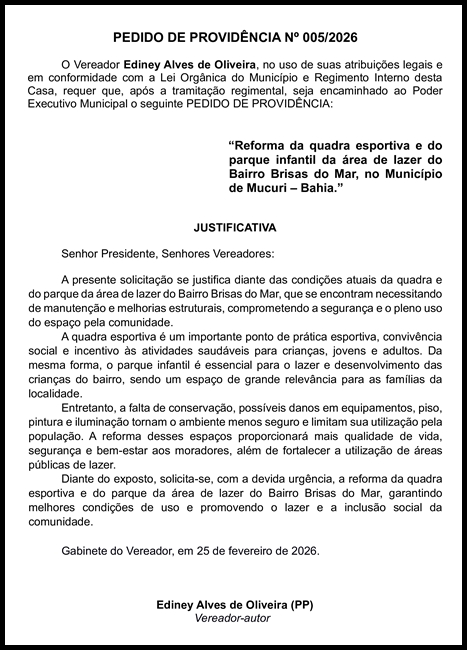 PEDIDO DE PROVIDÊNCIA Nº 005/2026