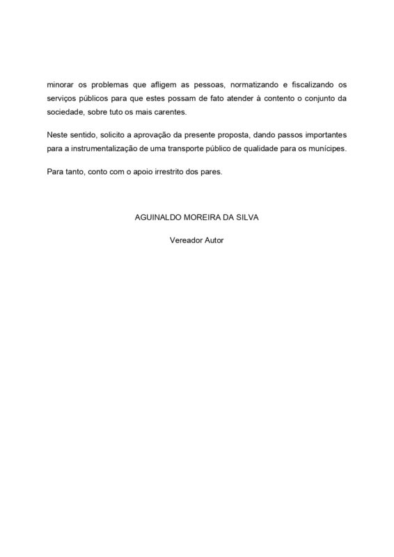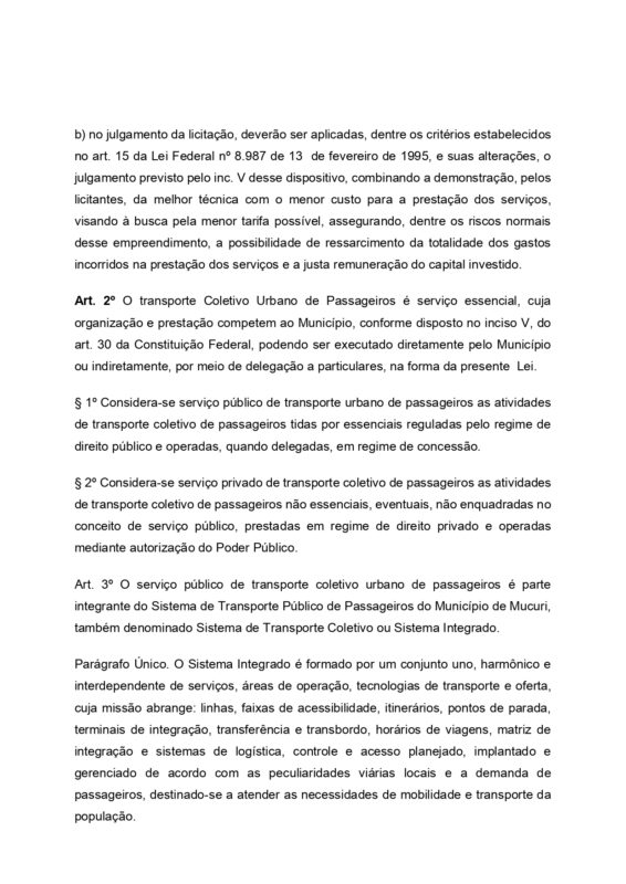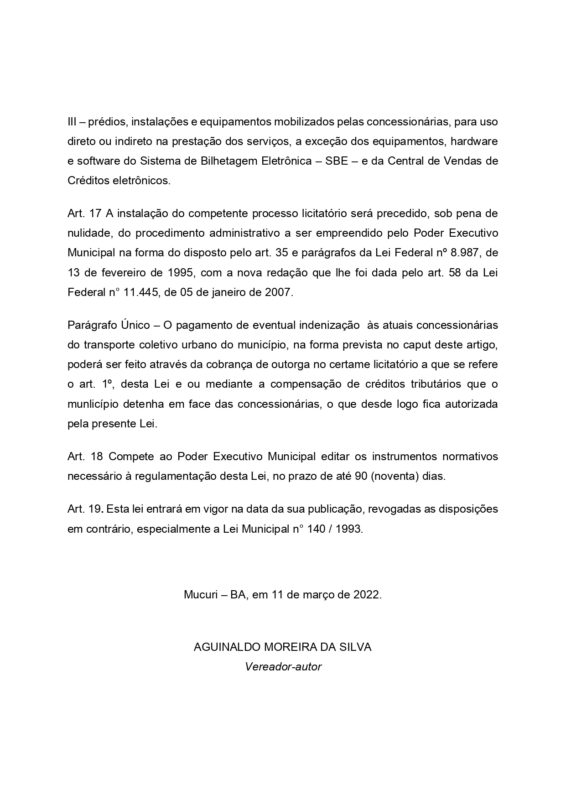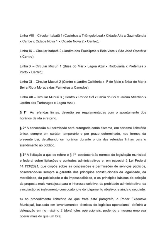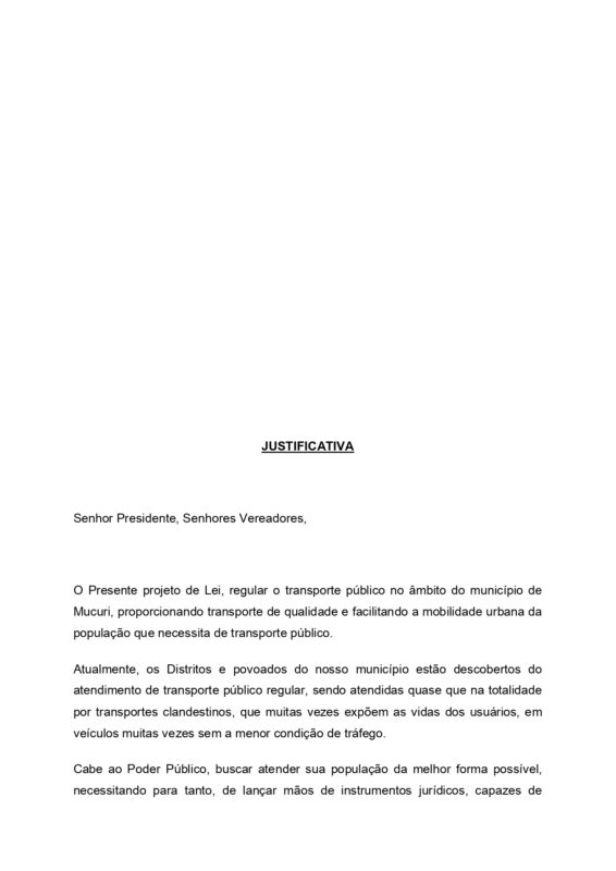 O PLC foi aprovado por unanimidade em primeiro turno de votação. Finalidade é, conforme a justificativa do documento, regular o transporte público no âmbito do município de Mucuri, proporcionando transporte de qualidade e facilitando a mobilidade urbana da população que necessita de transporte público.