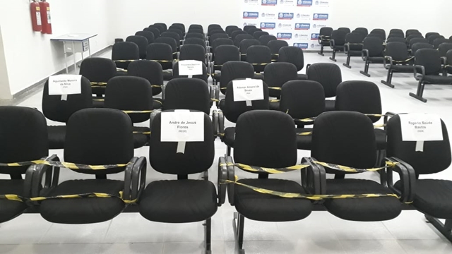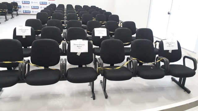Todos os assentos dos Vereadores foram previamente marcados, mantendo-se o distanciamento