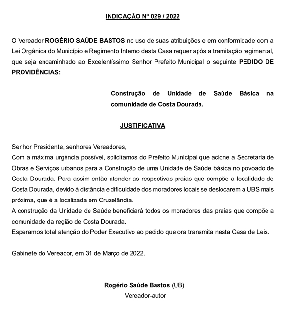 INDICAÇAO Nº 029/2022
