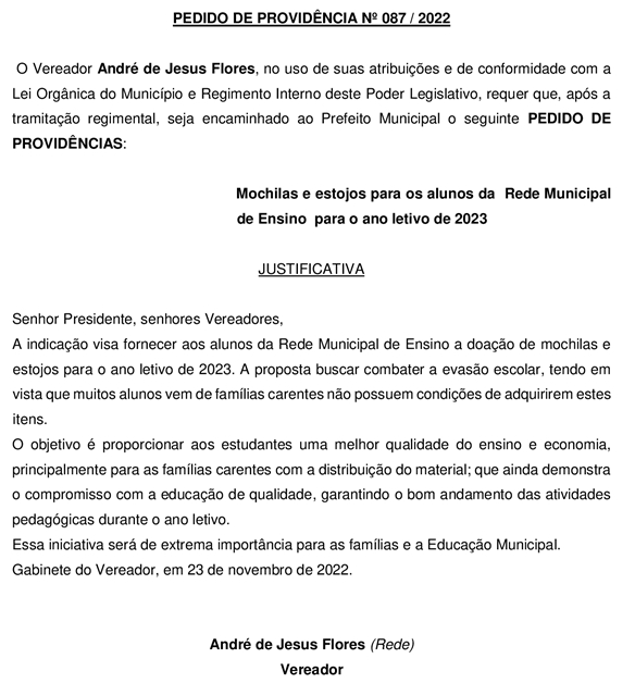 PEDIDO DE PROVIDÊNCIA Nº 087/2022