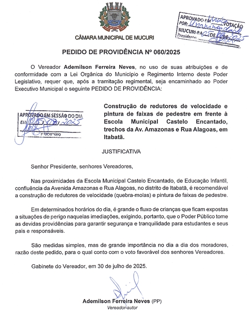 PEDIDO DE PROVIDÊNCIA Nº 060/2025