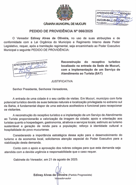 A entrada de uma cidade é o seu cartão de visitas. Em Mucuri, município com forte potencial turístico devido às suas belezas naturais e localização privilegiada no extremo sul da Bahia, é fundamental dispor de uma estrutura acolhedora e funcional para recepcionar os visitantes.