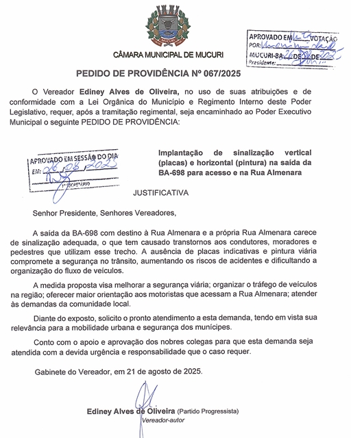PEDIDO DE PROVIDÊNCIA Nº 067/2025