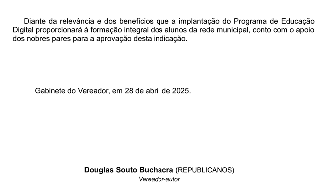 Na justificativa, o vereador reconhece que, com a constante evolução tecnológica e a transformação digital que atinge todas as esferas da sociedade, torna-se fundamental preparar nossas crianças e adolescentes para as demandas do mundo contemporâneo. A implantação de um Programa de Educação Digital nas escolas municipais de Mucuri é uma medida estratégica para garantir o acesso dos alunos às competências essenciais da atualidade.