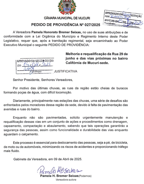 PEDIDO DE PROVIDÊNCIA Nº 027/2025