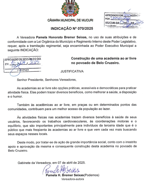 PAMELA SEIXAS APRESENTA MAIS 3 PROPOSIÇÕES, TODAS APROVADAS