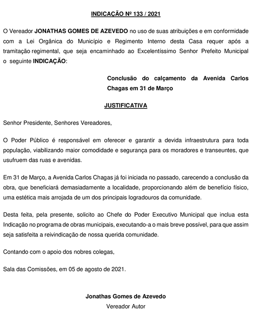 INDICAÇÃO Nº 133/2021