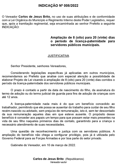 INDICAÇÃO Nº 008/2022