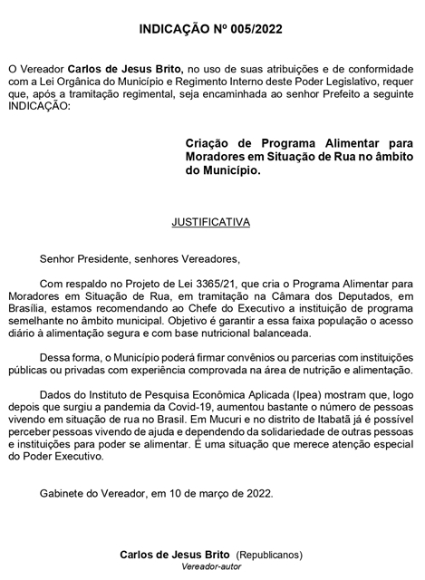 INDICAÇÃO Nº 005/2022