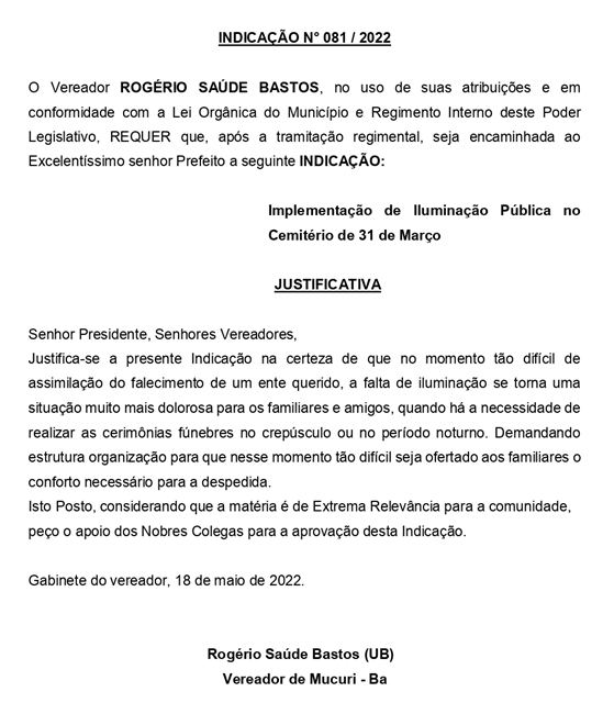 INDICAÇÃO Nº 081/2022