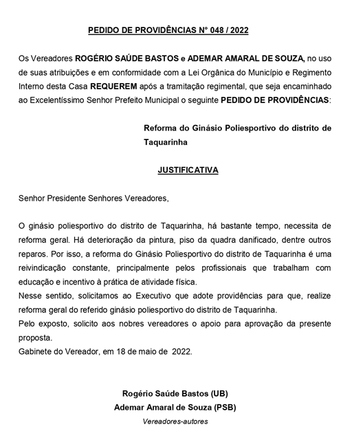 PEDIDO DE PROVIDÊNCIA Nº 048/2022
