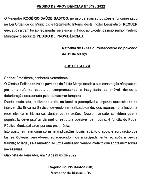 PEDIDO DE PROVIDÊNCIA Nº 049/2022