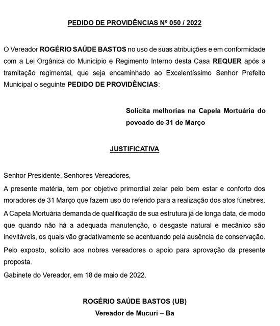 PEDIDO DE PROVIDÊNCIA Nº 050/2022