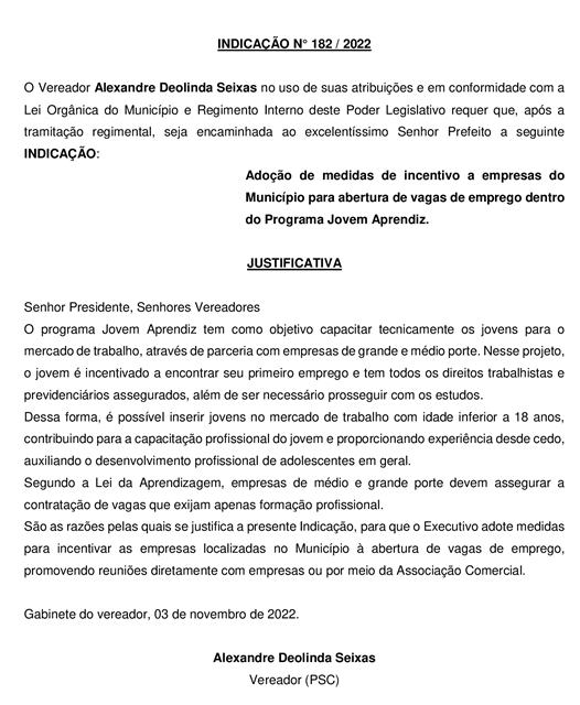 INDICAÇÃO Nº 182/2022