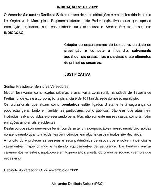 INDICAÇÃO Nº 183/2022