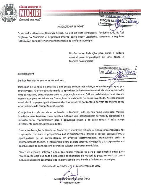XANDÃO SEIXAS PEDE: PROGRAMA MENOR APRENDIZ, PREVENÇÃO A INCÊNDIOS, BANDA DE MÚSICA