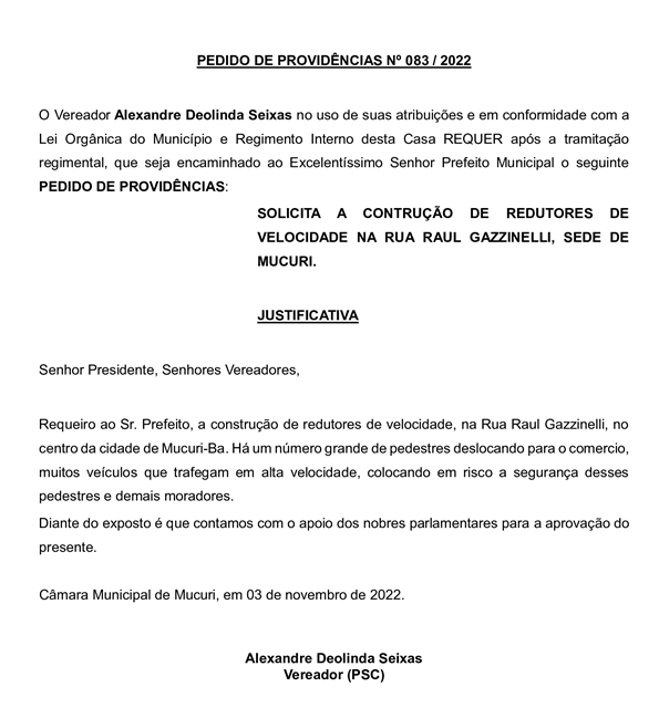 PEDIDO DE PROVIDÊNCIAS Nº 083/2022