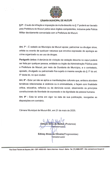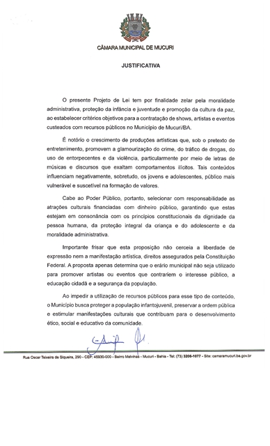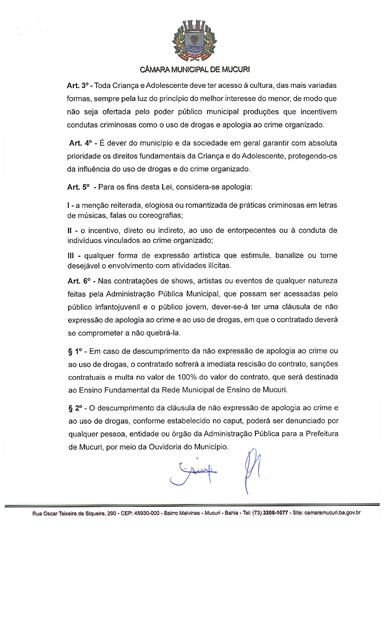 SHOWS QUE FAZEM APOLOGIA AO CRIME ORGANIZADO E AO USO DE DROGAS DEVEM SER PROIBIDOS EM MUCURI