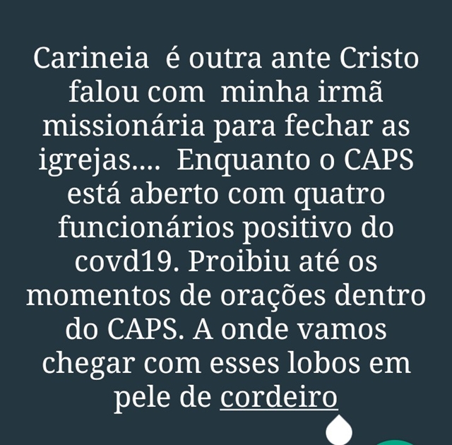 Com críticas ferrenhas ao secretário de Saúde, Fernando Jardim, o vereador também encaminhou ‘prints’ de mensagens postadas no WhatsApp.