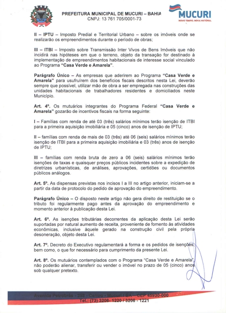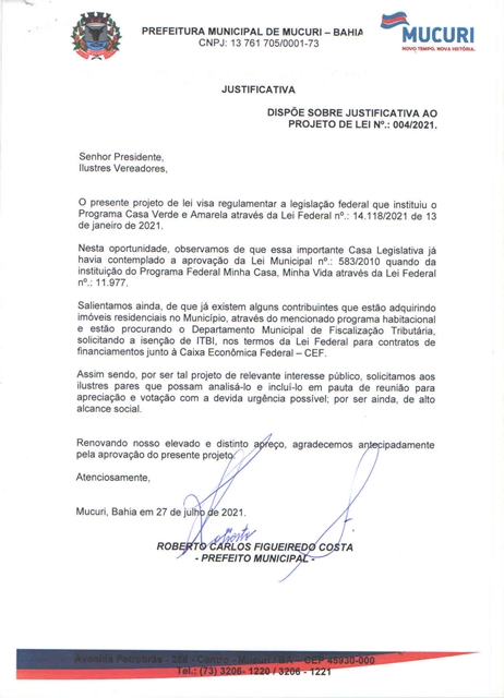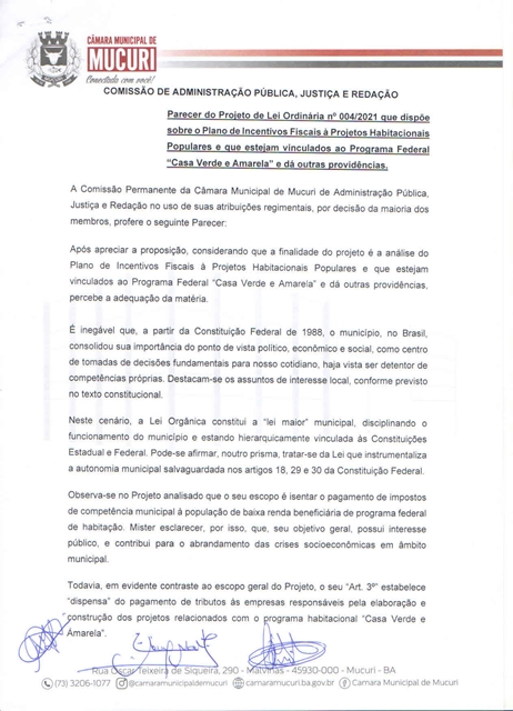 Aprovado por unanimidade, em turno final de discussão e votação, o Projeto de Lei Ordinária nº 004/2021, de 27/07/2021, autoria do Poder Executivo, que dispõe sobre o Plano de Incentivos Fiscais a projetos habitacionais populares e que estejam vinculados ao Programa “Casa Verde e Amarela”, do Governo Federal.