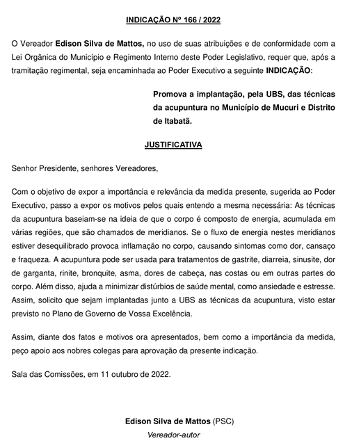 Na 24ª Reunião Ordinária da Câmara de Mucuri, realizada na tarde dessa terça-feira (18/10), os Vereadores aprovaram três Indicações de autoria do Vereador Edison Silva de Mattos (Sula– PSC).